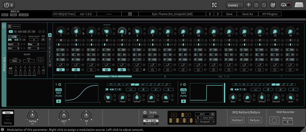 1 Pitch SEQ unit with 2 modulation source units